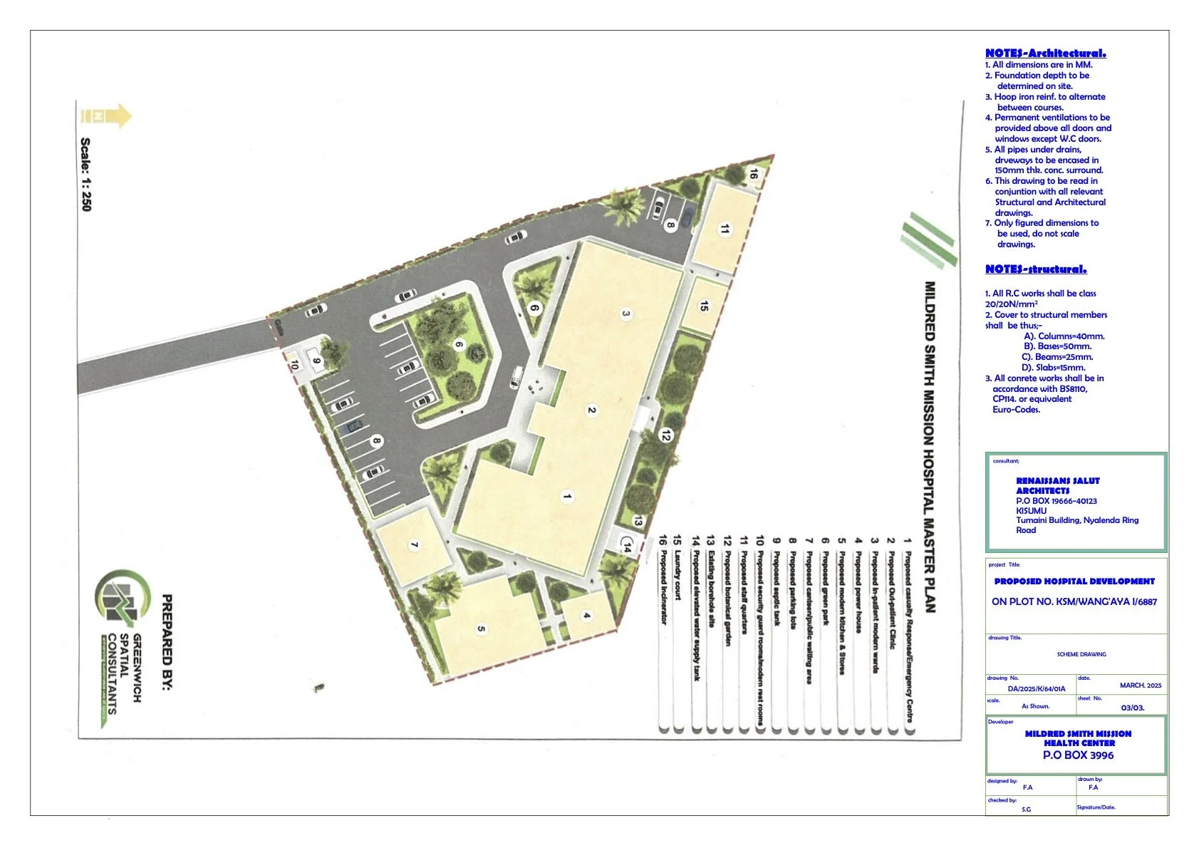 The hospital will include an expanded outpatient clinic, an emergency department, a surgery theater, facilities for labor and delivery, and inpatient wards. The plan incorporates our existing building, but adds other needed facilities also. Other recent upgrades include the finishing of our well and water tower, improving our electrical capabilities to assure better reliability, and a new septic system.